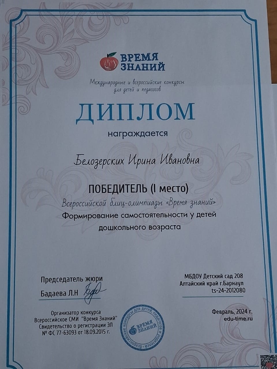 Белозерских Ирина Ивановна